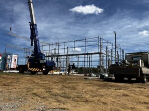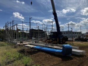 茨城県某市において、法人様の事務所と倉庫建築の建て方がはじまりました。